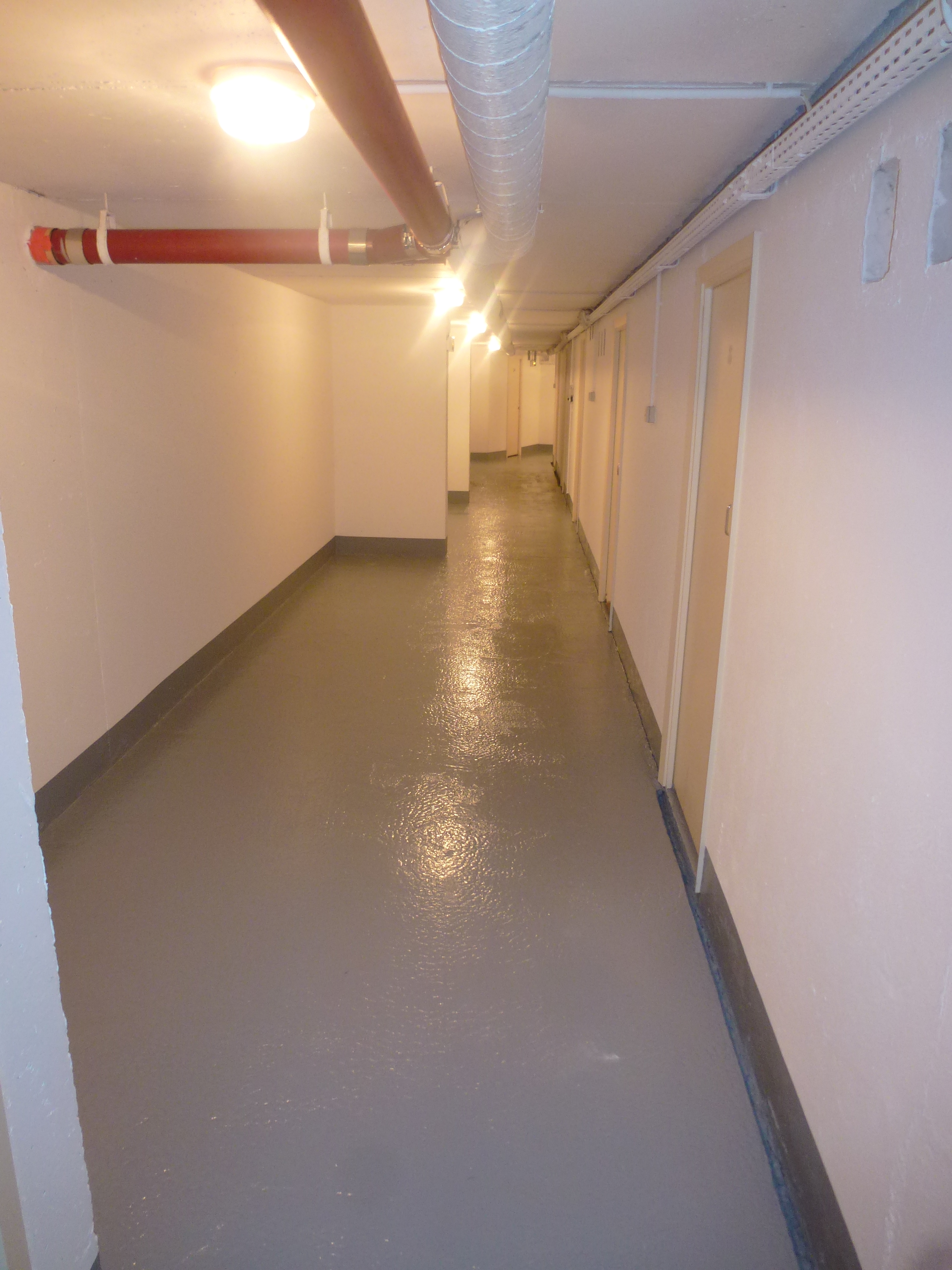 Rénovation complète de couloirs de caves dans une copropriété, peinture de sols incluse